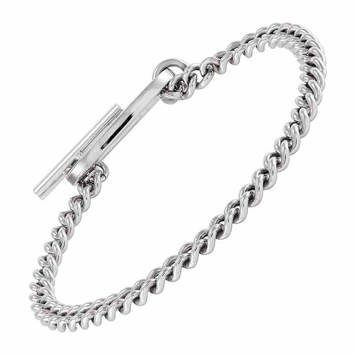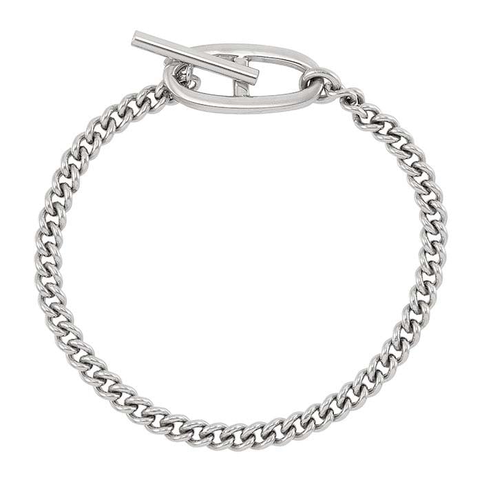 Этот браслет из стерлингового серебра с цепочкой curb предлагает универсальный, смелый стиль. Он отлично смотрится как самостоятельно, так и в составе многослойного образа. Браслет отделан высокоглянцевой полировкой и оснащён крупной застёжкой-тогглом. На нём есть клеймо ".925" из стерлингового серебра, символизирующее гарантированное качество изделия.