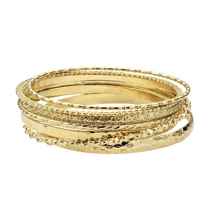Crafted from 12/20 yellow gold-filled material and featuring a bright, hammered finish, this flat bangle bracelet makes an affordable, eye-catching accessory. Offer it to your customers as a stand-alone piece, or take advantage of the affordable material by stacking three or more. A matching ring is available separately; create a coordinated set by offering the bracelet and ring together.
