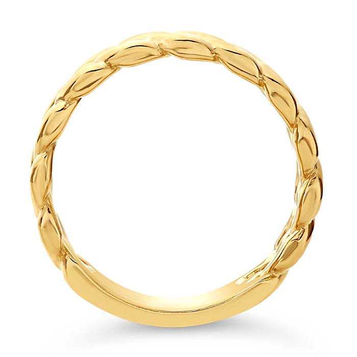 Denna färdiga 14-karats guldring har en öppen vävd design och erbjuder en storlekslist som gör det möjligt att justera ringen utan att störa mönstret i designen. Tillverkad enligt strikta kvalitetsstandarder i vår solcellsdrivna anläggning.
