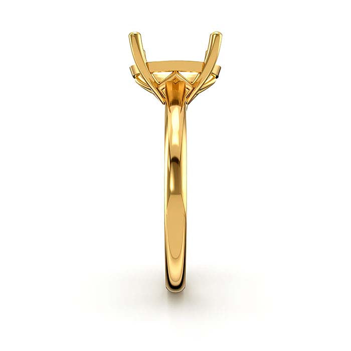 这款14克拉黄色黄金戒托采用经典单石设计,采用4爪篮式镶嵌,可容纳一颗10 x 8mm椭圆形刻面宝石。先在爪部切割座位以适应您的宝石,然后将爪部压光固定宝石。