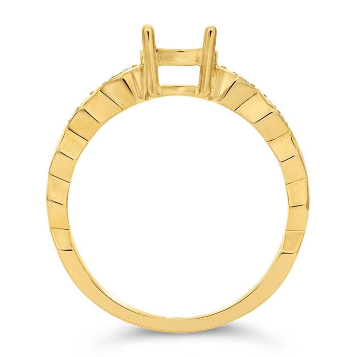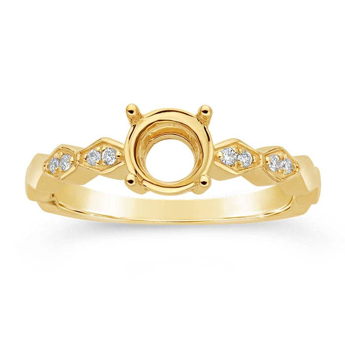 14K Yellow Gold . Round Semi-Mount Engagement Ring Mounting
