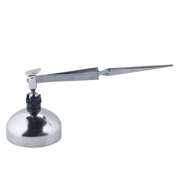 This bright, all-metal third-hand base features a ball joint and a thumbscrew attachment for a pair of steel cross-lock tweezers (6-1/2" long; included). The base is weighted (3/4 lb./316g), to keep it in place and the third-hand accessory allows you to work hands-free. A felt pad protects your work surface against scratches. Ideal for soldering, as your workpiece is held stationary while you manipulate the torch and solder pick.