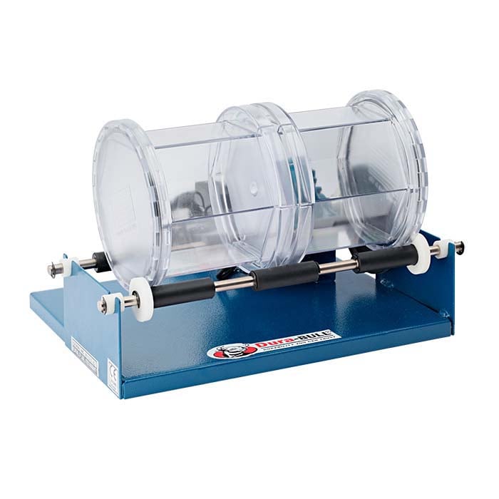 使用这款可靠的 Dura-BULL® 抛光机处理中等规模的批量和修饰工作。两个透明桶让您同时监控两个独立的工序。每个桶配有易于使用的旋盖,方便快速访问内容物;每个桶的容量为 3 磅钢珠。防漏闭合环和防滑带使双桶抛光机非常可靠。