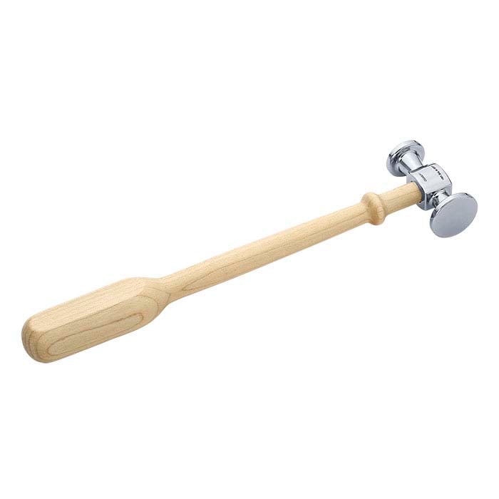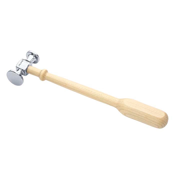 这款 Hilgari™ chasing 锤具有一个大而略微凸起的光滑面,用于敲击 chasing 工具或平整金属,另一端为圆形,用于敲打和铆接。钢制锤头确保耐用且可靠的使用寿命;两个锤面均经过高度抛光,有助于在完成尺寸调整后减少后续修整。锤柄设计流畅,符合手部握持舒适度,采用轻度处理的细密木材制成。每把锤子均装在 Hilgari 精制的木盒中,木盒配有带制造商标志的透明塑料滑盖。